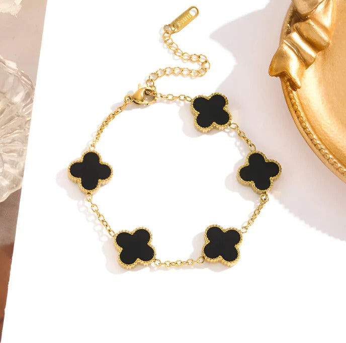 ✔ Design raffiné et intemporel – Cinq trèfles noirs délicatement incrustés pour une touche d’élégance et de mystère.